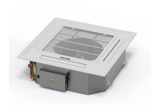 Before we dive into maintenance tips, it’s important to understand how a cassette-type fan coil unit works. The unit consists of a fan, air filters, coils, and a drain pan. The fan draws in room air, which is then passed over the cooling or heating coils. The air is conditioned by the coils (either cooled or heated) and distributed throughout the room through the air grilles located on the four sides of the unit. The unit typically runs on a central water-cooling or heating system, where chilled or heated water circulates through the coil to regulate room temperature.
